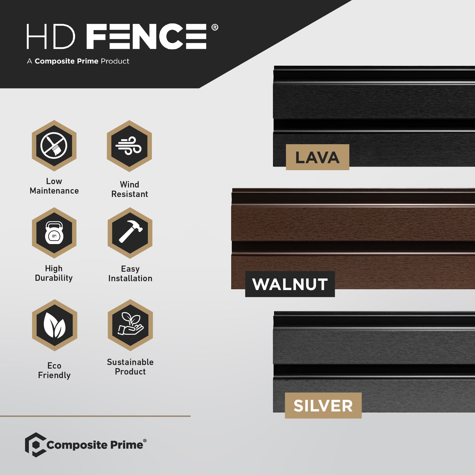 Whether you’re a DIY enthusiast or a professional installer, HD Fence is easy to fit, with options to retrofit into existing concrete posts or install with Composite Prime® posts. Available in three contemporary colours — Silver, Walnut, and Lava — it provides a beautiful, double-sided design that looks stunning from every angle.